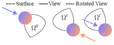 3DGS의 color는 view direction마다 다른 값을 표현하는 Spherical Harmonics(이전글)로 모델링되어 있습니다. 때문에 t에 따라 입자가 움직이면서 회전하게 되면 색상이 전혀 달라지게됩니다. 3DGS 프레임워크에 SH부분이 하드코딩되어 있어서, 저자는 view direction(시야 방향)에 역회전을 적용하였다고 합니다.