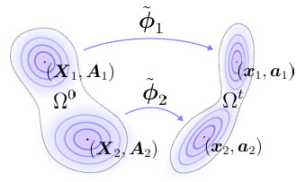 $\phi(x, t)$는 질량 보존의 법칙 설명에서 한번 언급된 기호며, 시간 변화에 따른 deformation map입니다. point가 변형되는 정도를 나타내는 array로 생각하면 될 것 같습니다. 이에 대한 역행렬은 변형 전 초기상태를 나타냅니다. 이를 계산가능한 수식으로 만들기 위해, local affine transformation가 가능하도록 $\phi$를 1차 근사식으로 바꿉니다.
