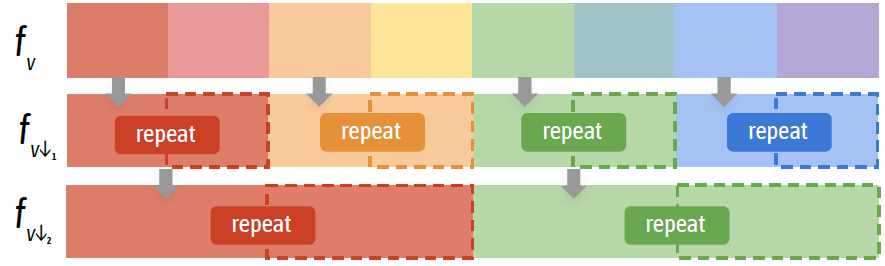 $f_{v↓}$는 down-sample된 feature라고 하며, 32개의 feature를 합치는 형태로해서 만들어집니다. 이 부분이 multi-resolution을 고려한 부분이라 생각됩니다.