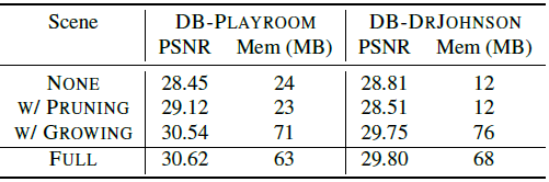 Pruning을 통해 연산량을 줄였으며, Growing은 texture가 없는 영역과 정교함이 필요한 영역에서 잘 작동했다고 합니다.