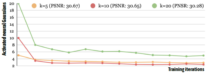 k를 다르게 시작 하더라도, anchor당 activated되는 gaussian의 갯수는 달라진다는 것을 보여주고 있습니다.