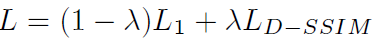 해당 MLP를 학습시키기 위한, Loss function은 L1 loss와 D-SSIM Loss가 0.8 : 0.2 비율(λ=0.2)로 적용됬습니다.