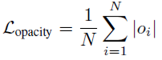 gaussian을 효율적으로 사용하기 위해서 추가한 term입니다. opacity는 0~1사이의 값으로, 1에 가까울수록 불투명해지고 0에 가까울수록 투명해집니다. 때문에 해당 수식을 통해 투명한 것들은 더욱 투명하게 만들게 됩니다.