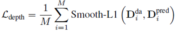 Large-scale로 학습을 하게 될 경우 불안정한 결과를 만들기 때문에, Gaussian Position을 optimization하는게 어려웠다고 합니다. rendering loss만으로 할 경우 3D 표면에 놓여있지 않은 floater들을 제거하기 위해, DepthAnything 모델로 획득한 disparity map(=1/depth)을 활용해서 regularization하는 방법을 사용했습니다. disparity의 median $t(d_i)$ 값을 기준으로 $\frac{1}{HW} \sum \left| d_i - t(d_i) \right|$ 식을 통해 normalization하여 depth를 smooth하게 만들어서 수렴이 잘되도록 설계했습니다.