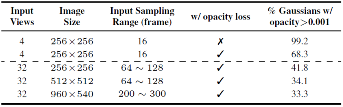 - Gaussian Pruning적용 : Gaussian의 opacity top 40%를 사용하고, 나머지 10%만을 랜덤하게 샘플링해서 사용 -> 메모리 절약