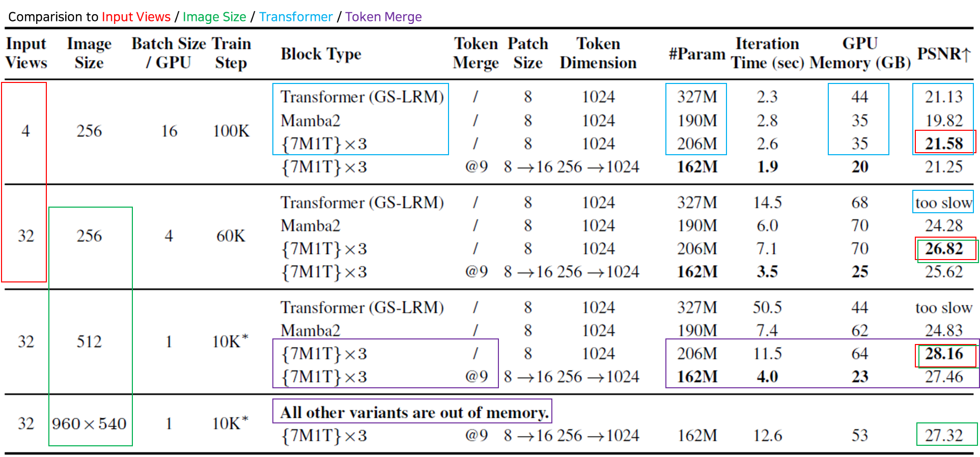 Token Merge와 Gaussian Pruning으로 사용 메모리를 줄였습니다.