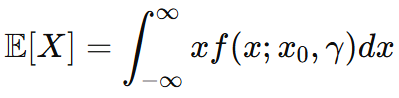 1. 평균과 분산이 정의되지 않습니다. $x_0$는 평균이 아니라 median과 mode입니다. $\gamma$ 는 분산이 아니라 scale을 나타냅니다. $x_0$와 $\gamma$를 평균, 분산으로 두었을 때, 수학적으로 적분값이 수렴되지 않고 발산합니다.