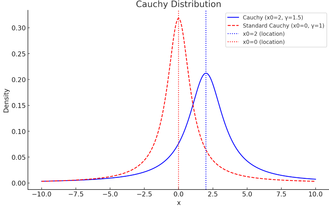 Cauchy Distribution는 확률 분포 중 하나로 다음과 같은 확률 밀도 함수를 가집니다.
