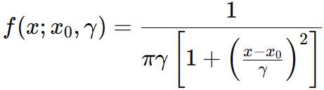 Cauchy Distribution는 확률 분포 중 하나로 다음과 같은 확률 밀도 함수를 가집니다.