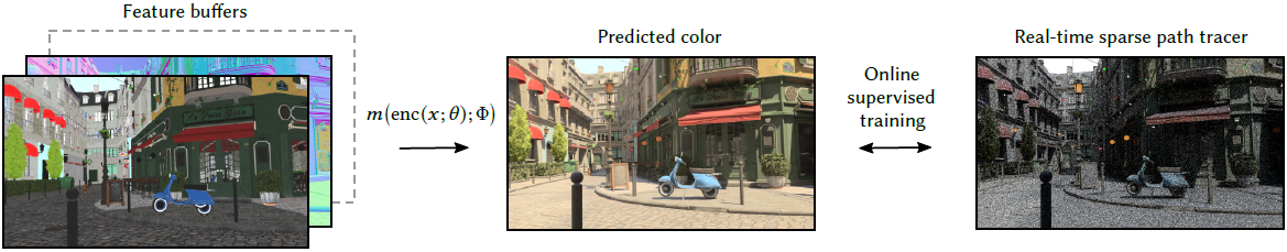 - Neural Radiance Caching (NRC) : 주어진 Scene에 대해 가속된 global illumination computation(전체 조명 연산)을 위한 ray-tracing기반의 연산입니다. 모든 조명에 대해 voxel들이 계산하여 랜더링 할 수 없기 때문에, glossy한 surface의 radiance를 sparse하게 sampling하고, caching하고, interpolation하는 분야입니다.