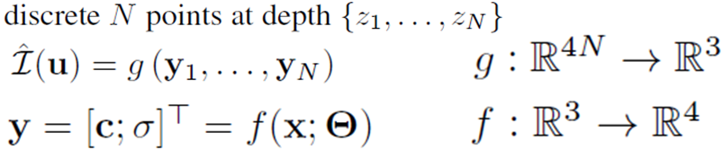 g는 ray 위 에서 sampling 된 N개의 Point 들을 MLP로 통과 시킨 결과 y값들을 입력으로 가집니다.