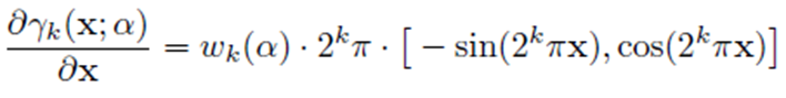 논문에서 r 함수에 대한 gradient를 아래와 같이 언급 해두었습니다. Original NeRF에서는 positional encoding의 결과값이 MLP의 입력값이기 때문에, gradient를 계산하지 않아도 됩니다. BARF에서는 J(u;p) 를 계산할 때 쓰이지 않을까 합니다.