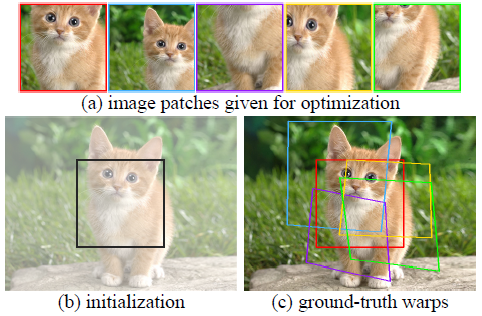 위에서 3D 카메라 Pose에 대해서만 언급하였는데, 실제 논문에서는 2D pose에 대해 먼저 언급되어 있으며, 2D상에서 2D Pose도 추정하면서 랜더링을 할 수 있습니다. ImageNet에서 아래와 같은 5(=M)장의 랜덤 Patch가 주어질 때, pose parameter를 찾으면서 representation을 학습하는 Task를 잘 해결 하는지 실험하였습다.