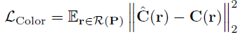 먼저 익숙한 NeRF의 Color Supervision Loss는 아래와 같습니다. (추가 설명은 이전 포스트 참고 바랍니다.)
