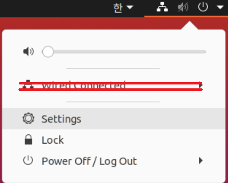 증상1) 우분투에서 매번 보이던 Wired Connection이 보이지 않습니다.