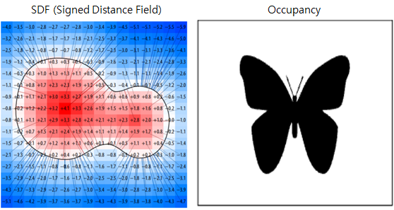 Geometry관점에서 주어진 object의 내부는 +, 외부는 - , Surface에 근점 할 수록 0이되는 데이터 포맷입니다. 가장 가까운 surface까지의 거리를 표시합니다.( 출처 : link ) 비슷한 시기의 UNISURF라는 연구는 occupancy representation(내부는0, 외부는 1, 출처: link)을 사용했다고 합니다.