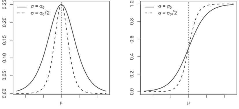 (7-3) 좌항의 Φ은 Logistic density distribution, (7-3) 우항의 Φ는 sigmoid function 입니다.