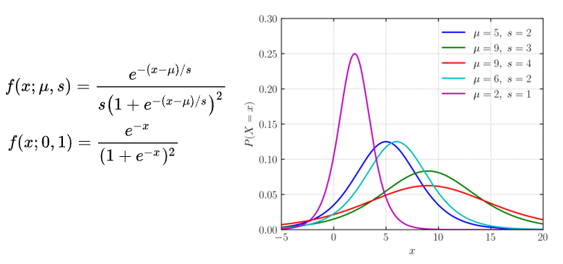 논문에서 사용되는 logistic density distribution는 아래 수식입니다. 위 wikipedia수식과 다른 점을 보면, 아래 수식은 μ(평균)이 0이고, s(표준편차)는 역수입니다.