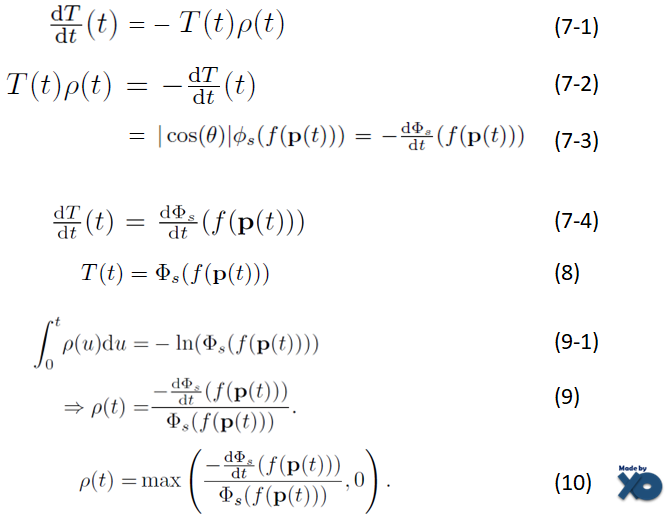 Opaque density 값이 음수가 되면 안되기 때문에, 최소값이 0이 되는 수식으로 (10) 식으로 바꿔줍니다.