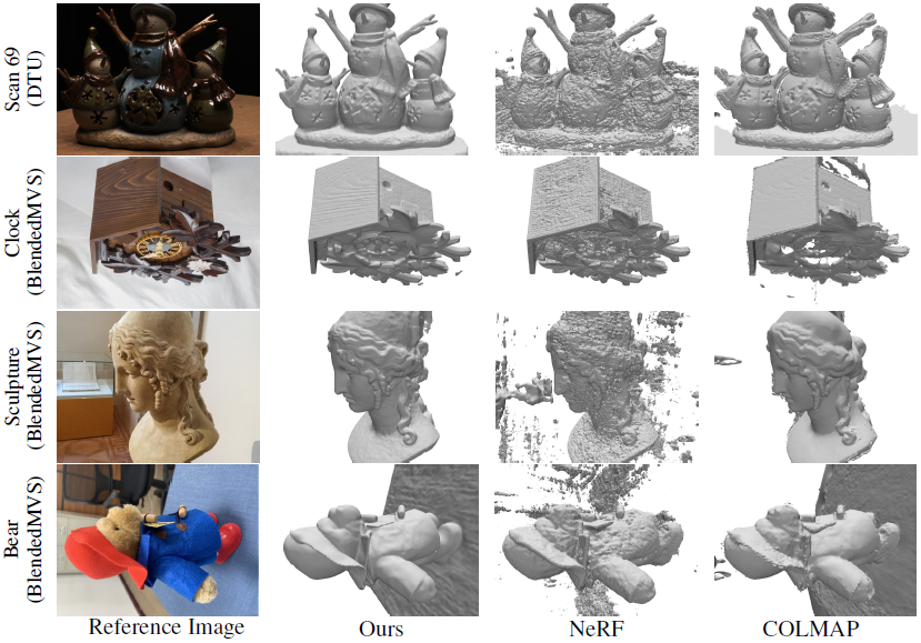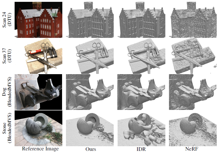 하지만 최초 NeRF는 surface reconstruction이 아닌 novel view synthesis에 초점이 맞춰져 있기 때문에 high-quality surface를 만들지 못했습니다. NeuS에서는 NeRF와 SDF representation을 사용해서 High Quality로 3D Reconstruction하는 방법에 대해서 다룹니다.