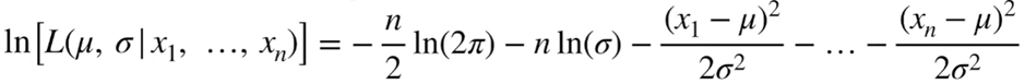 iid(independent and identically distribution)를 따르므로, L( μ,σ | x1, x2, x3 ) = L( μ,σ | x1 ) * L( μ,σ | x2 ) * L( μ,σ | x3 ) 로 변환 될 수 있고, log가 씌워지면서 덧셈 연산으로 바꿀 수 있습니다. 첫번째 줄의 설명이었습니다. 1번째 줄을 정리하면 2번째 줄이 됩니다.