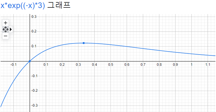 다음 단계로, Likelihood(확률)값이 Maximum(최대)가 되는 λ를 계산해보기 위해, 확률 밀도 함수를 λ에 관한 함수로 그려보겠습니다. x를 3으로 고정하고, λ에 관한 함수로 표현하면 다음과 같습니다.