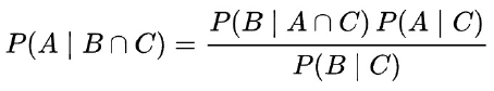 첫 번째 줄은 베이즈 정리에 의해 변환됩니다.