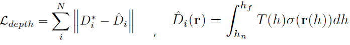 D*를 NeRF통해 prediction된 depth map D^와 비교하여 Loss (초록색 화살표)를 구합니다.
