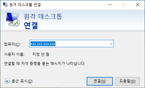 기본 windows 원격접속 프로그램 사용을 전제로 합니다.