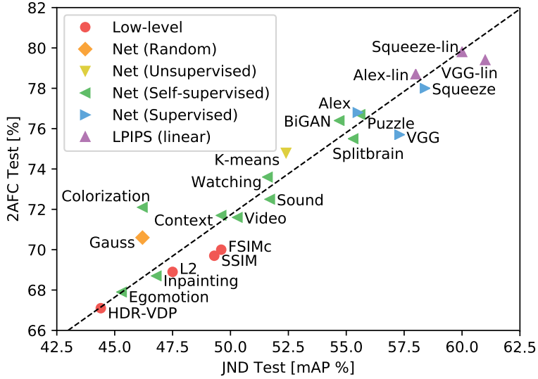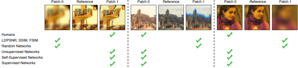 - Supervised, self-supervised, unsupervised object로 학습된 deep feature가 low-level의 preceptual similarity 모델링을 아주 잘하는 것을 보여줬습니다.