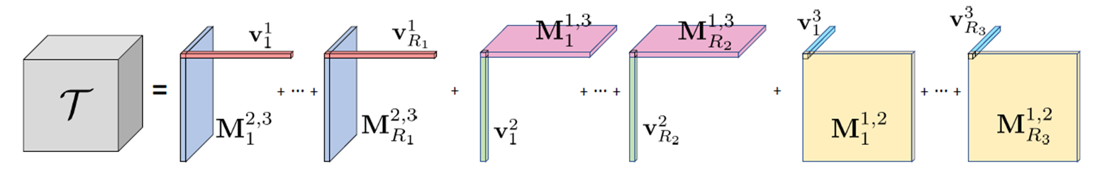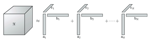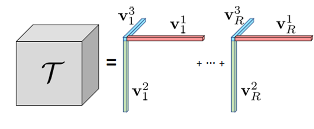 n-1차원 vector의 외적이 1개의 Rank를 구성하고, r개의 Rank들의 합이 n차원의 데이터를 근사합니다.