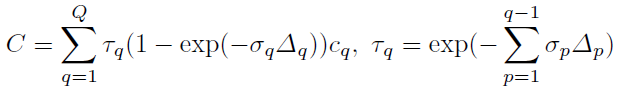 이렇게 획득한 point좌표에 대한, volume density값과 color값은 Volume Rendering공식을 통해, 최종적인 Pixel Color로 계산됩니다. Δq는 ray위의 점과 점사이의 거리입니다. 자세한 설명은 최초 NeRF(이전글 link)를 참조 바랍니다.