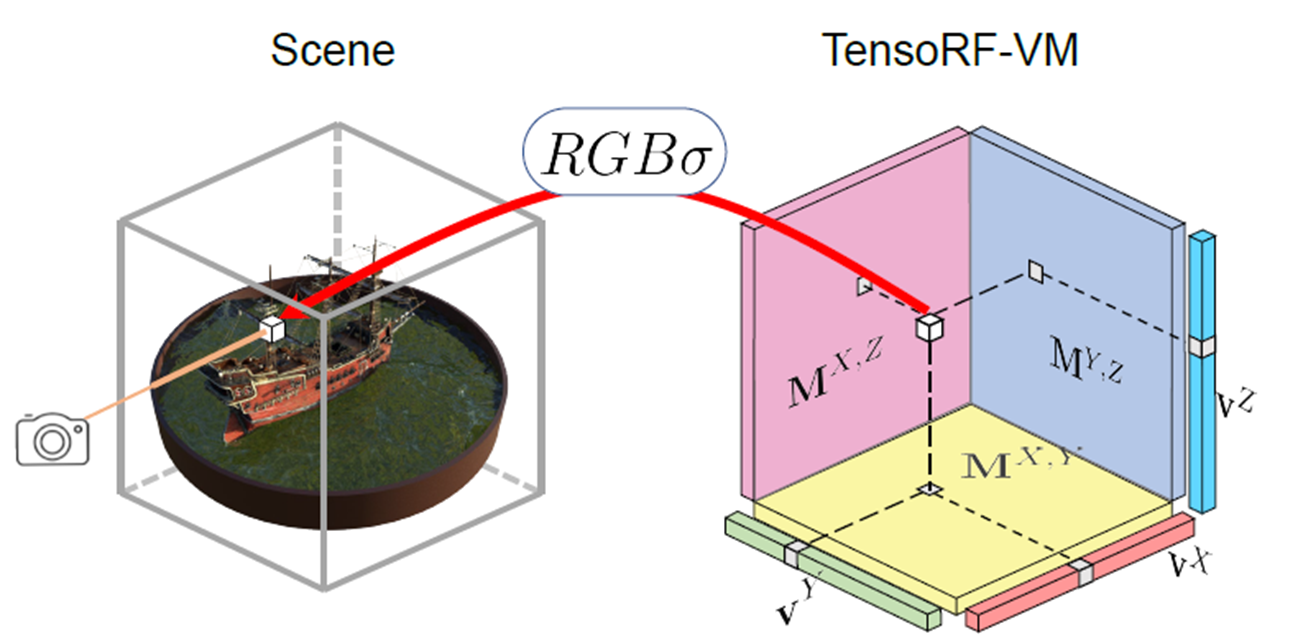 주어진 (Radiance Field) Scene에 대해 Tensor Decomposition 모델링을 Main Idea로 가져가는 연구입니다.