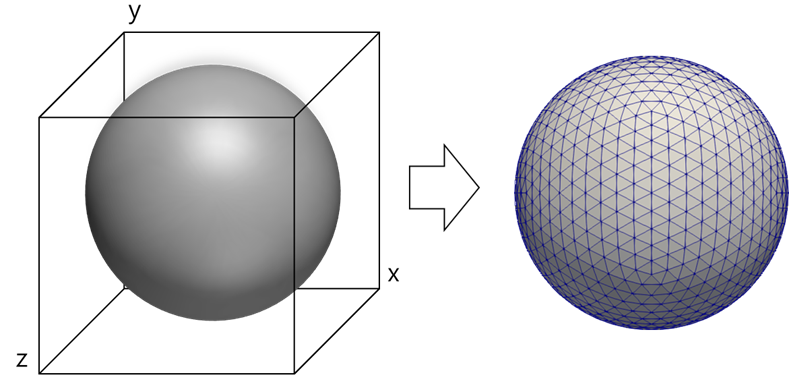 각 투명 cube는 총 8개의 vertex로 구성되어 있으며, 이 vertex들이 object에 포함되어 있는지 유무에 따라 미리 정의해 둔 polygon으로 변형하여, 전체 3D Mesh를 형성합니다.