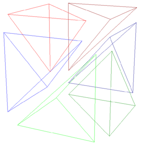 각 다격형의 시작점은 edge의 중간을 꼭지점으로 갖기 때문에, 모든 투명cube를 이어붙이면 3D Mesh를 만들 수 있습니다.