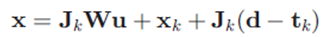 Covariance는 서로 다른 랜덤 변수의 상관관계를 나타내는 matrix이기 때문에 상수부분을 제외하면 x = J*W*u 이 되는 것을 볼 수 있습니다. (<- 이 부분은 확실하지 않습니다.)