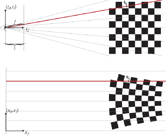 3차원에서 2차원으로 projection될 때 함수는 비선형입니다. 그 이유는, World 좌표계에서 Camera 좌표계로 변환은 선형 변환이지만, camera 좌표계(아래 첫번째 그림)에서 직선 ray에 위의 point들은 image 좌표계(아래 두번째 그림)에서 비선형적인 것을 볼 수 있습니다.