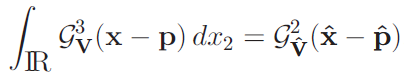Σ'는 3차원의 covariance값을 계산하므로 실제적으로 3x3 matrix가 되게 되는데, EWA volume splatting(2001년)논문에서 3차원 가우시안을 한쪽 축으로 적분하면 2차원 가우시안과 동일한 값을 가지게 되기 때문에 3번째 행과 열을 값을 버릴 수 있다고 합니다. g3은 3D Gaussian을 G2는 2D Gaussian을 나타내고, ^가 붙은 변수는 3D와 2D를 구분하기 위한 기호입니다.