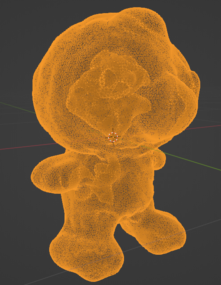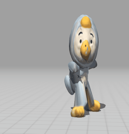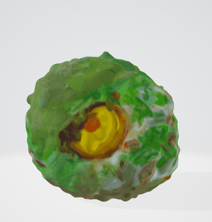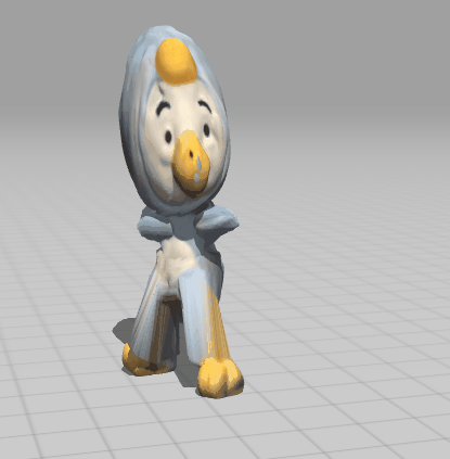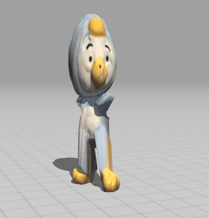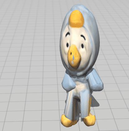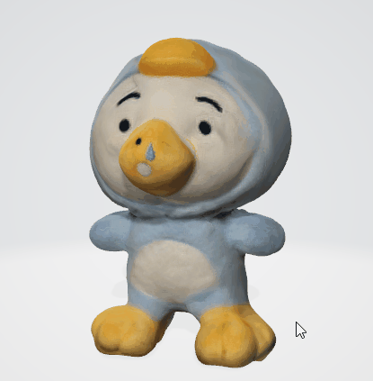 오리처럼 부리가 앞으로 나오고, 없던 꼬리가 생겼습니다. 머리 중간중간에 꺼진 부분이 있습니다. Stable Diffusion모델엔 tube인형이 없을테니 실제 오리의 형상을 갖고와서 적용한 것을 볼 수 있습니다. 신기하게도 z volume을 예상해서 둥근 타원 형태로 만들었습니다. 내부를 살펴봤을 땐, 안쪽엔 장기와 뇌가 생겼습니다.... 서비스 관점에선 만족스럽진 못하지만, 기술적으로 봤을 땐 정면사진 1장만으로 보이지 않는 Mesh와 Texture까지 만들다니 엄청난 결과입니다.