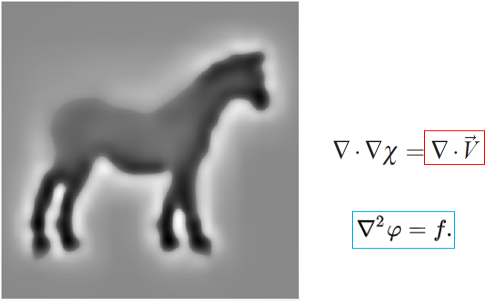이것을 풀기 위해, 2차 편미분 방정식 중에 하나인 Poisson Equation(푸아송 방정식)이 사용됩니다. 이해없이 Implementation단계 보셔도 됩니다. (출처 : link)