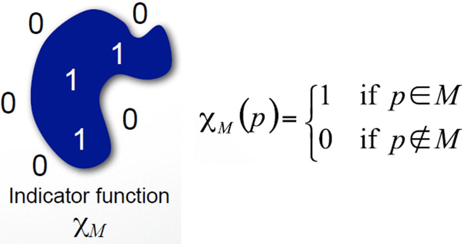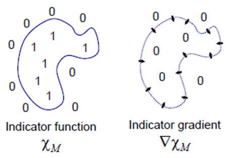 Object Mesh(M) 내부에 Point(p)가 있으면 1, 외부이면 0인 함수를 Indicator function으로 정의합니다.