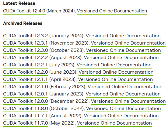 최신 버전과 다르게 설치해야하는 부분은 여기입니다. Driver는 최신버전으로 설치되었으므로, CUDA Toolkit만 설치해줍니다.