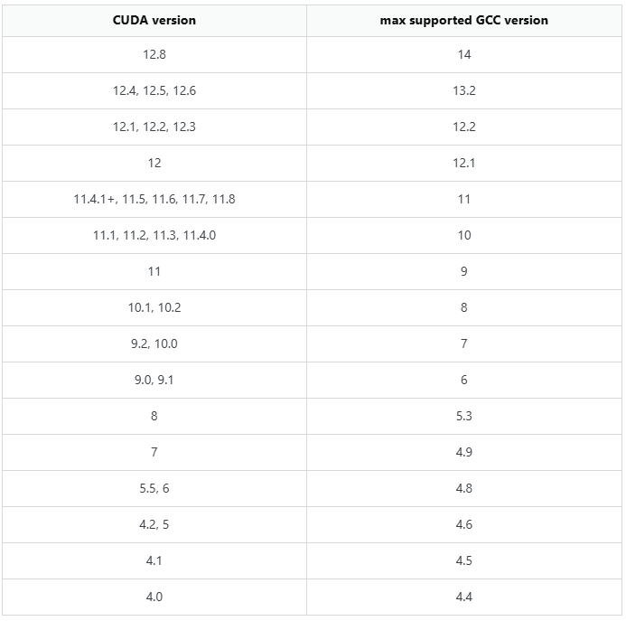 cuda별 지원하는 gcc가 다릅니다 (출처 : link).