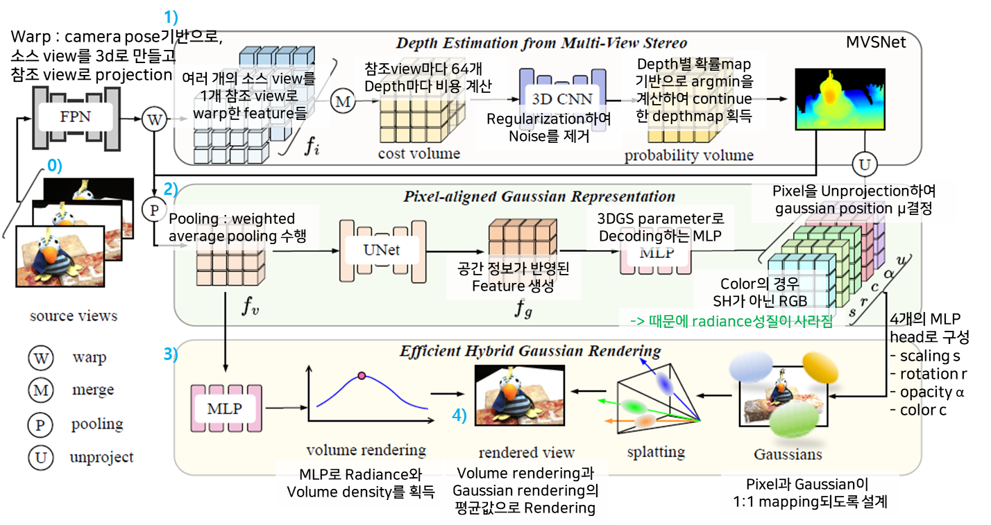 MVS기법을 사용해서 Generalizable Gaussian Splatting을 구성하는 방법론에 관함