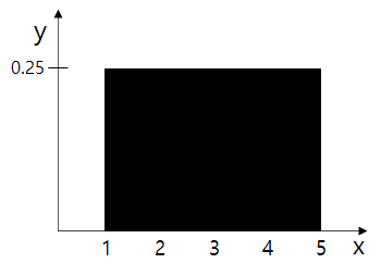 1~5 실수 범위에서 2~3 실수 범위를 관측할 Probability는 0.25입니다.